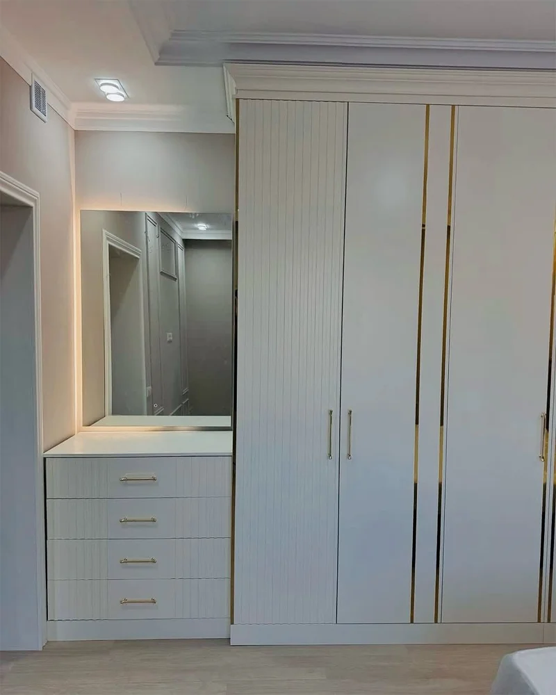 در طراحی کمد دیواری مدرن، زیبایی در کنار کارایی معنا پیدا میکند. استفاده از کمد دیواری سفید با رنگ پلیاورتان، علاوه بر ایجاد جلوهای روشن و لوکس، مقاومت بالایی در برابر رطوبت و خطوخش فراهم میکند. تمامی کمد دیواریها بهصورت سفارشی و هماهنگ با سبک دکوراسیون داخلی طراحی میشوند.